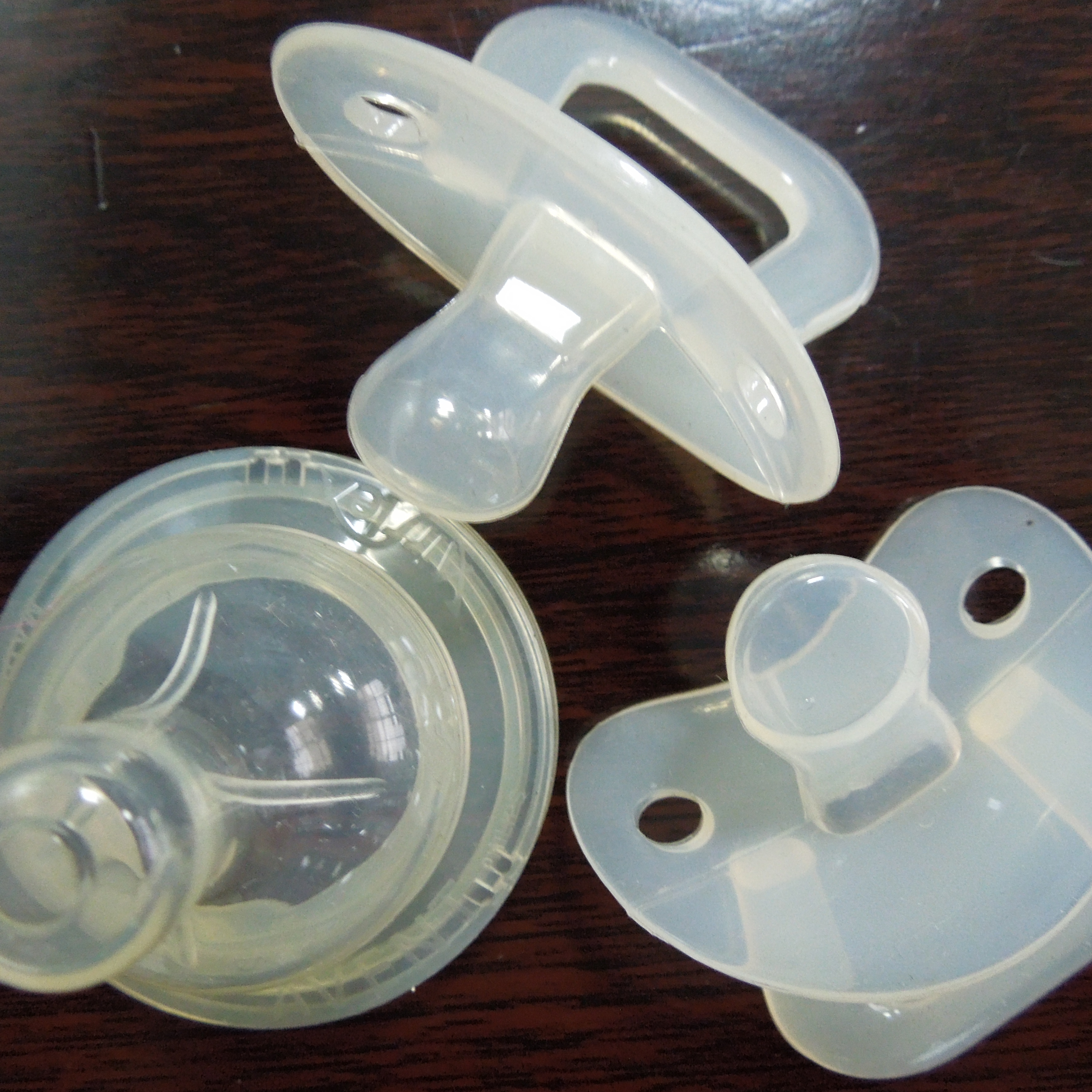 一般的硅膠日用品都是環(huán)保純硅膠制成,如果涉及到食品衛(wèi)生,就得采用食品級硅膠,食品硅膠是一種硅酸縮聚而成的無機高分子膠體材料,主要成份是SiO2·nH2O,其含量在98%以上,無毒無味,化學(xué)性能穩(wěn)定,在常態(tài)下除苛性堿和氫氟酸外,不和任何酸堿鹽起反應(yīng)。由于它是一種膠體結(jié)構(gòu),所以具有很多微孔和很大的比表面積。食品級硅膠孔徑約為8-10nm,比表面積300-500m2/g,而且表面親水,對水有很強的吸收能力,在高濕情況下其吸水量可達自身重量的80%-100%以上。所以食品級的硅膠可以作為食品、藥品的外用干燥劑。由于食用硅膠是經(jīng)過精制和滅菌后,可以和食品藥品按需要量混合后直接保證食品的干燥并和食品一起食用,而對人體無任何毒副作用。我公司生產(chǎn)的硅膠奶嘴、硅膠口水兜、硅膠濾水籃、硅膠蛋糕模、硅膠蛋糕刷子等食用器具。下面有圖為證: